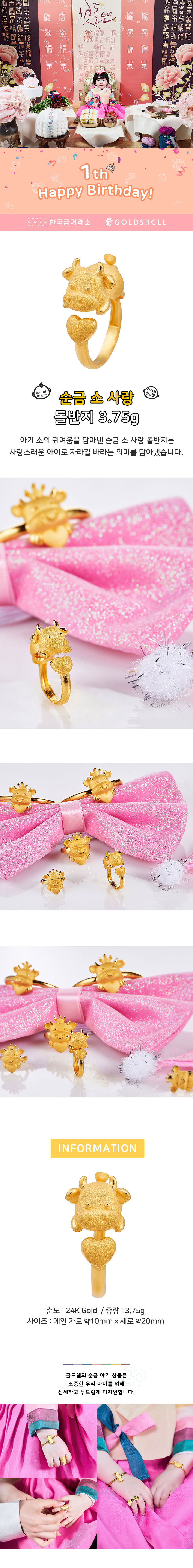 순금 소 사랑 돌반지 3.75g